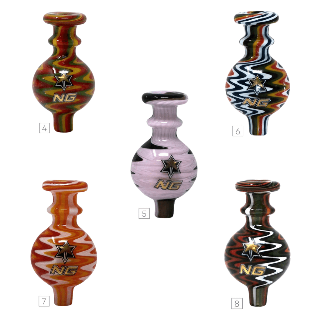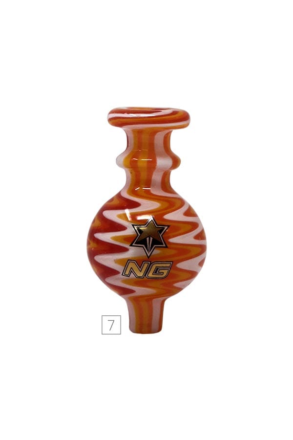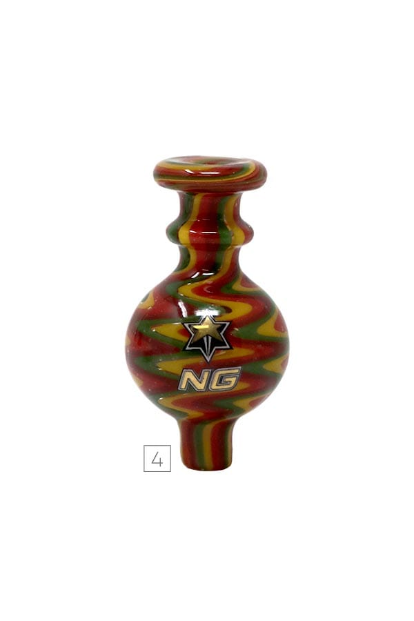 The Nice Glass Switchback Bubble Carb Cap features a stunning multicolored design from top to bottom. This carb cap modifies the airflow to your nail while increasing flavor and efficiently while retaining heat when dabbing at lower temps. Also works perfectly with beveled edged bangers!