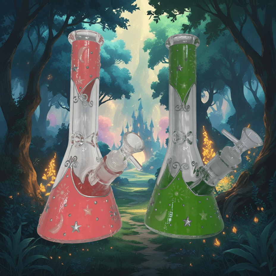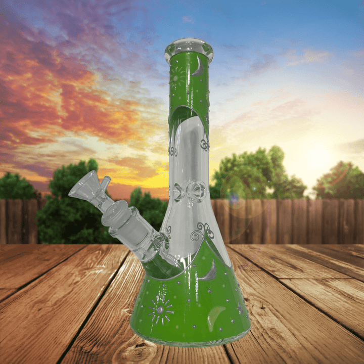 Light it up with this beautiful 10" beaker bong from Retro Glass, Made from 100% borosilicate glass. Perfect for any style of smoker, This piece is equipped with a built-In ice pinch that allowing you to stack ice cubes cooling down that smoke, Better yet a 6-slit diffused downstem making sure every hit delivers. With a stunning glow-in-the-dark star pattern inlayed through the beaker base and the mouthpiece giving you a perfect viewing window for your waterline.