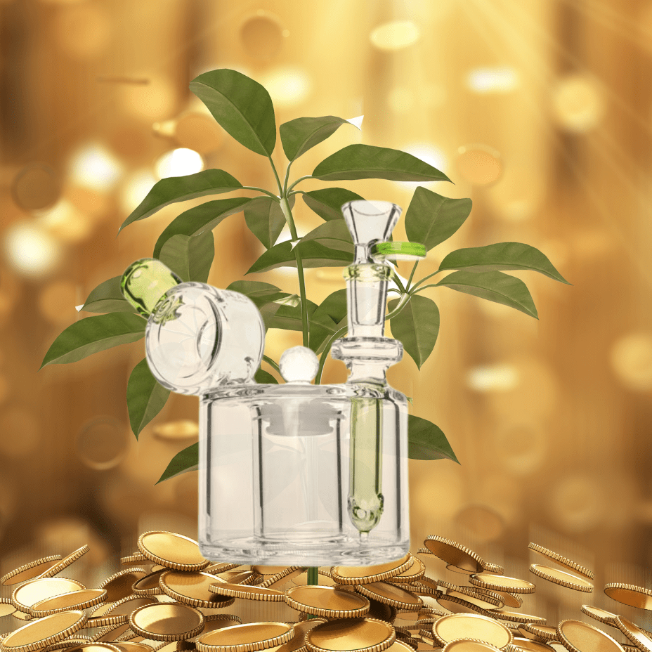 Cache Money Bubbler Dab Rig by Gear Premium Glass is 6" in height with a super wide sturdy base to ensure you have a flawless smoke session every time. This Gear Premium bubbler bong has a unique feature added with its built-in flower storage jar in the center so you can keep your favorite flower close at all times and the rubber seal ensures it stays fresh for your next sesh.