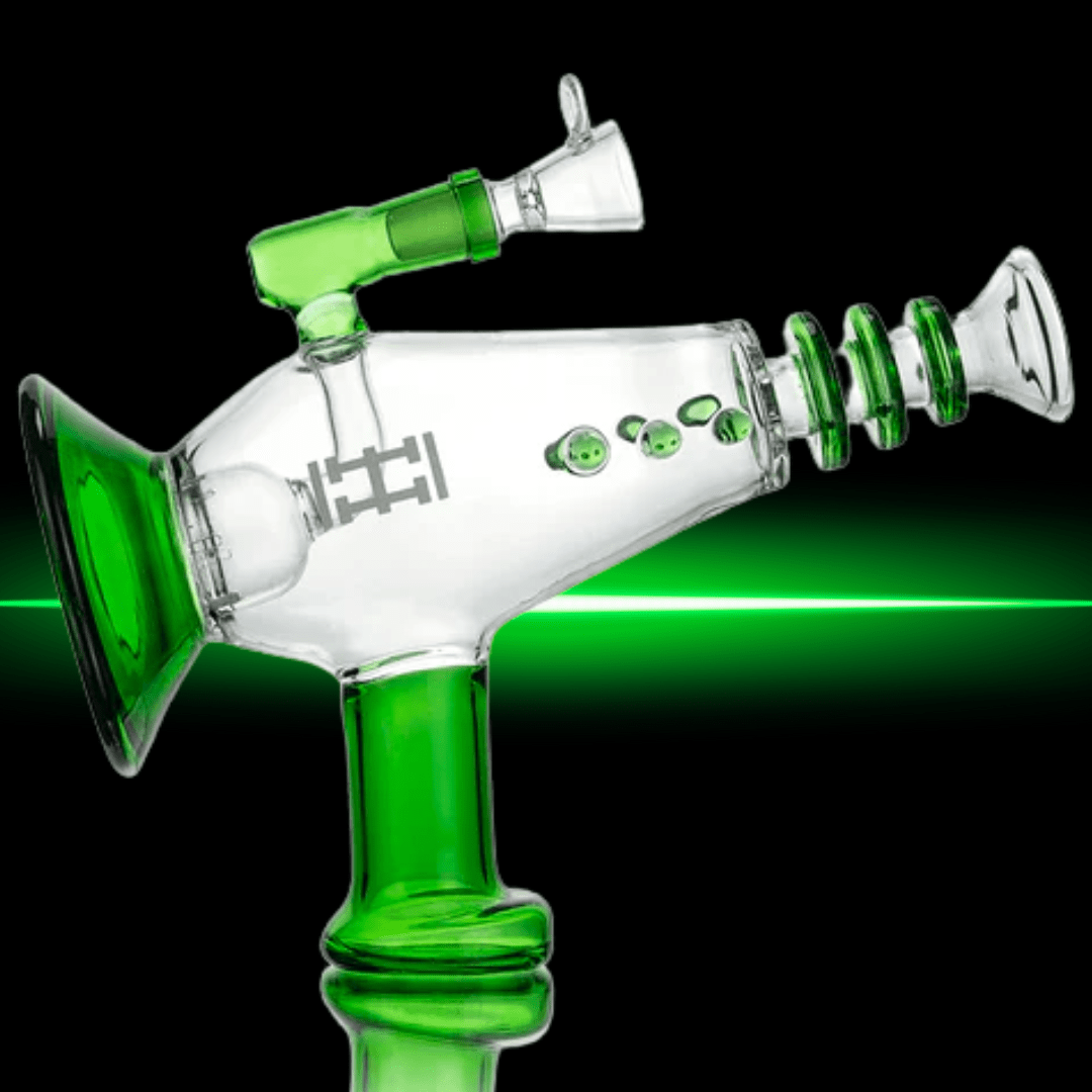 Made with function AND looks in mind, the spill resistant design gives you seamless transition from an epic bong to your very own phaser gun! The flat bottom design of the gun handle even allows you to display it 24/7 in phaser mode- trust us when we say we are absolutely obsessed with this piece!