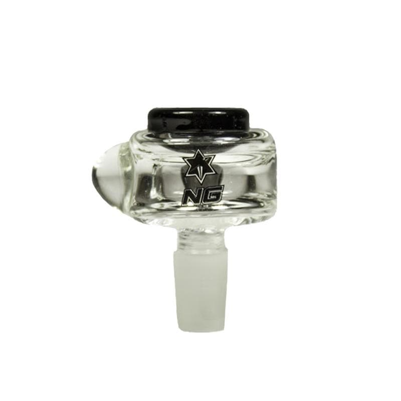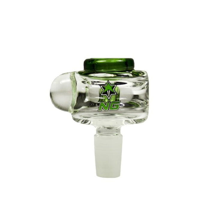Made by Nice Glass these quality thick clear glass bowls come with single hole color inset for the herb. This bowl has a glass marble that functions as a roll stopper and comes in a range of color options.