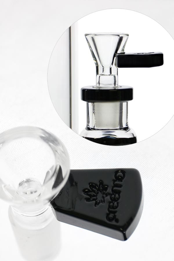 Preemo Glass Embossed Square tab Bowl is a beautifully designed bowl with the attachment of the bowl handle being on the bowl itself instead of the joint section which makes this bowl much more durable then other bowls, the shoulder-less intake hole allows for a smoother airflow without ridges restricting the combustion process when you light your bowl!