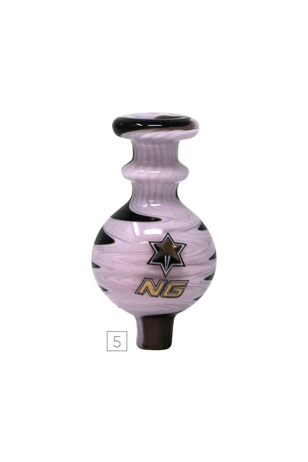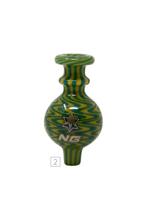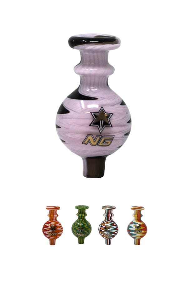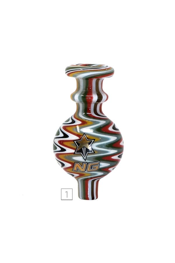 Nice Glass Switchback bubble carb caps feature a multicolor design from top to bottom. Works perfectly with beveled edge bangers as well as any other banger. It modifies airflow to your nail while increasing flavor and efficiency and helps to retain the heat while dabbing at lower temps.
