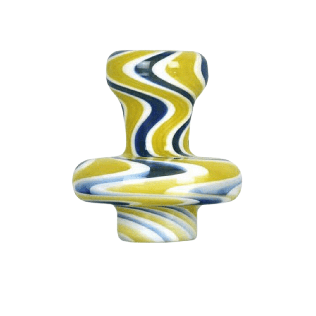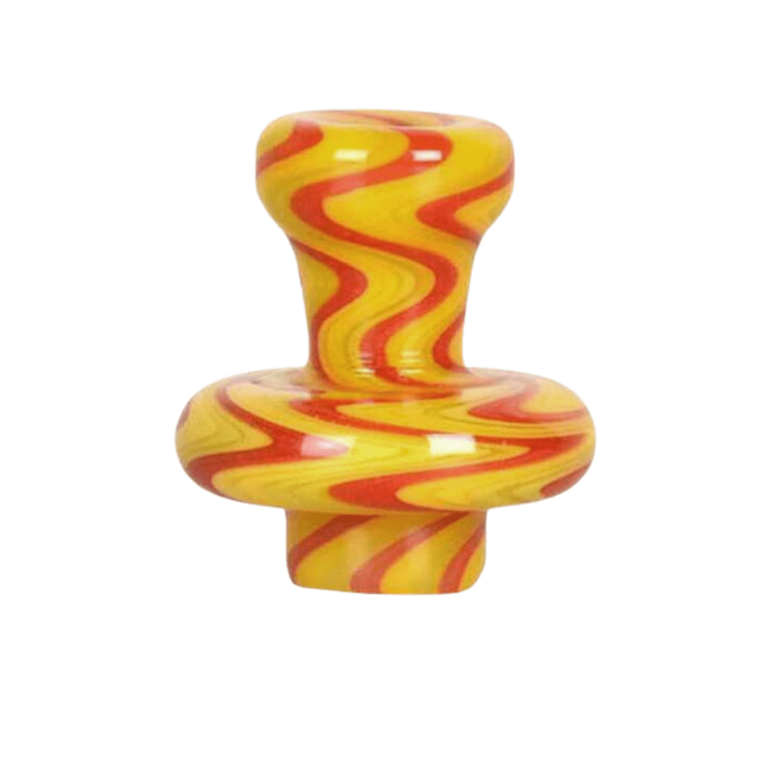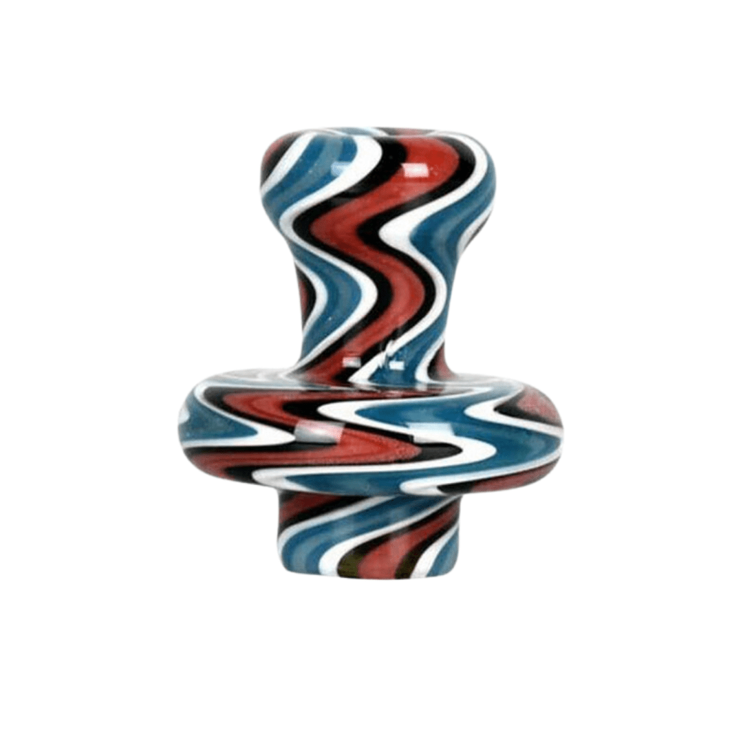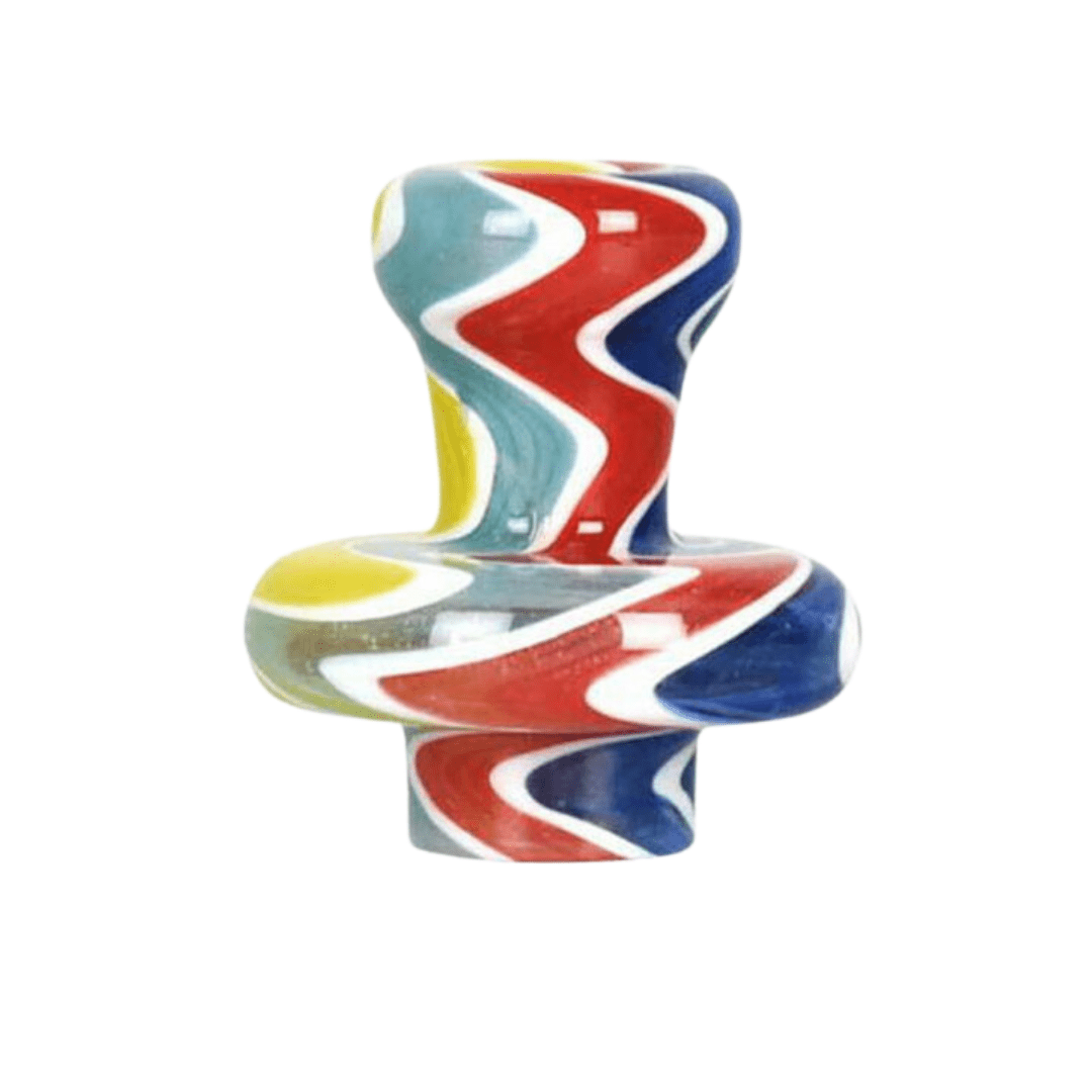 The Pulsar Wig Wag 31mm Carb Cap Featuring directional airflow, these carb caps assist with even and efficient vaporization of concentrates. Carb caps have a wig wag colour stripe design. These Pulsar Wig Wag carb caps are made from quality borosilicate glass and measure 31mm wide.