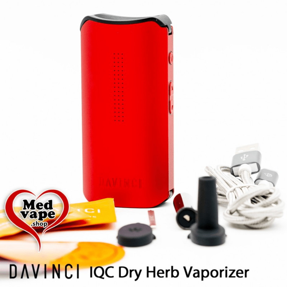 DAVINCI IQC Dry Herb Vaporizer. Highlighting Clean First technology, Temperature Control, App Connectivity, Replaceable Battery, and USB-C charging, the IQC has it all including a 10 year warranty!