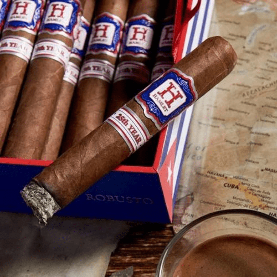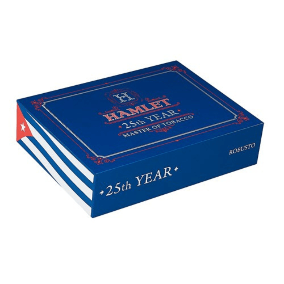 Rocky Patel Hamlet 25th Year utilizes a deep, rich Ecuadorian Habano wrapper to encase hearty Nicaraguan and Honduran fillers. Hamlet Paredes operates with Cuban quality in mind, so each stick in these boxes is a certified masterpiece. With hints of cedar, coffee, and a little bit of spice on every puff.