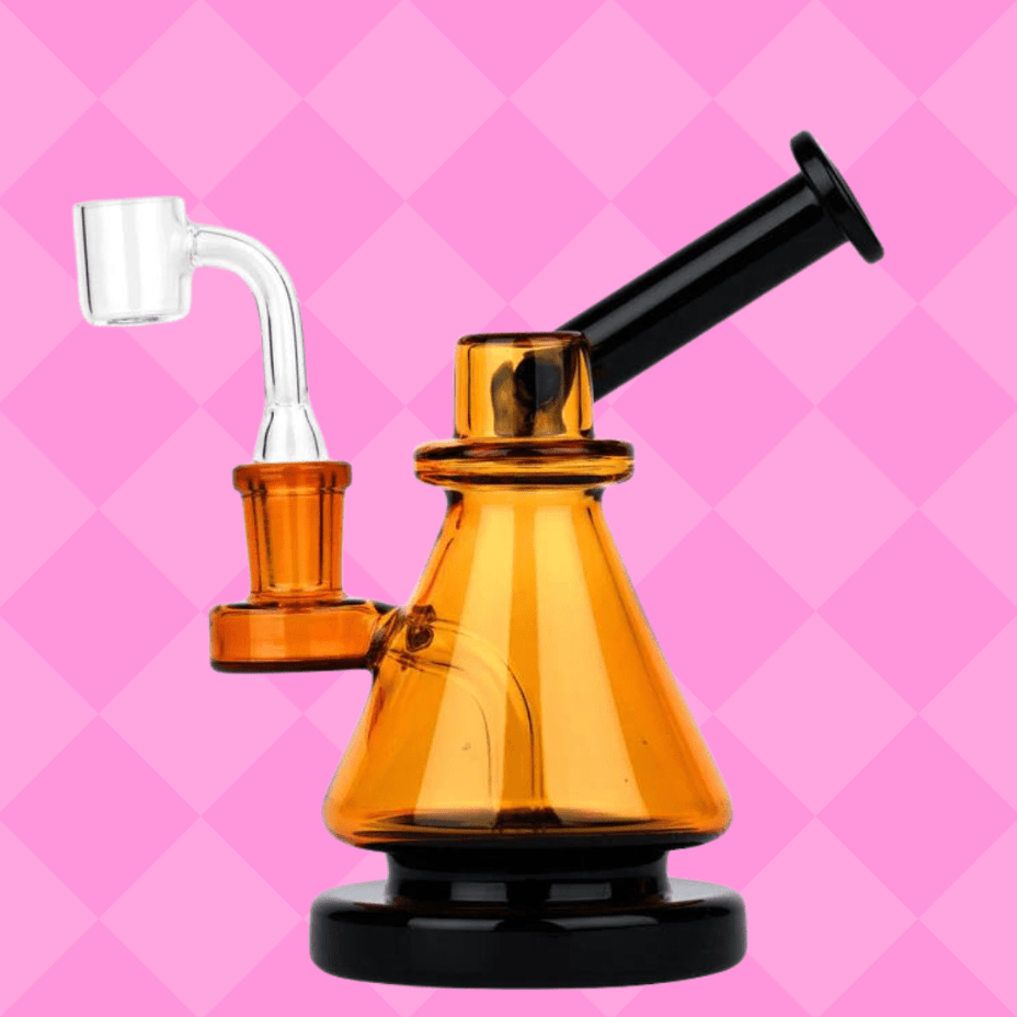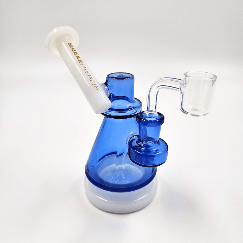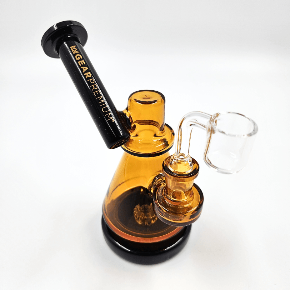 The Floating Beaker Rig from GEAR Premium® stands sturdy at a perfect 6" in height that delivers delicious-tasting smoke and an angled mouthpiece for a premium smoking experience. Made from 100% high-quality borosilicate glass, this concentrate rig will make you feel like you're floating on air!