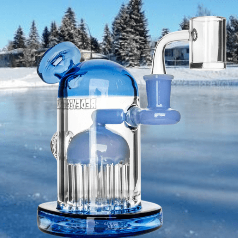 Guaji Concentrate Rig by Red Eye Glass is 6.5" tall and is beautifully designed with an 8-arm tree percolator that creates milky white clouds of smoke and provides optimal smooth hits and pure flavor. Featuring a decorative diamond marble on the outer chamber, this domed Guaji Concentrate Rig also includes a quartz banger with purchase.