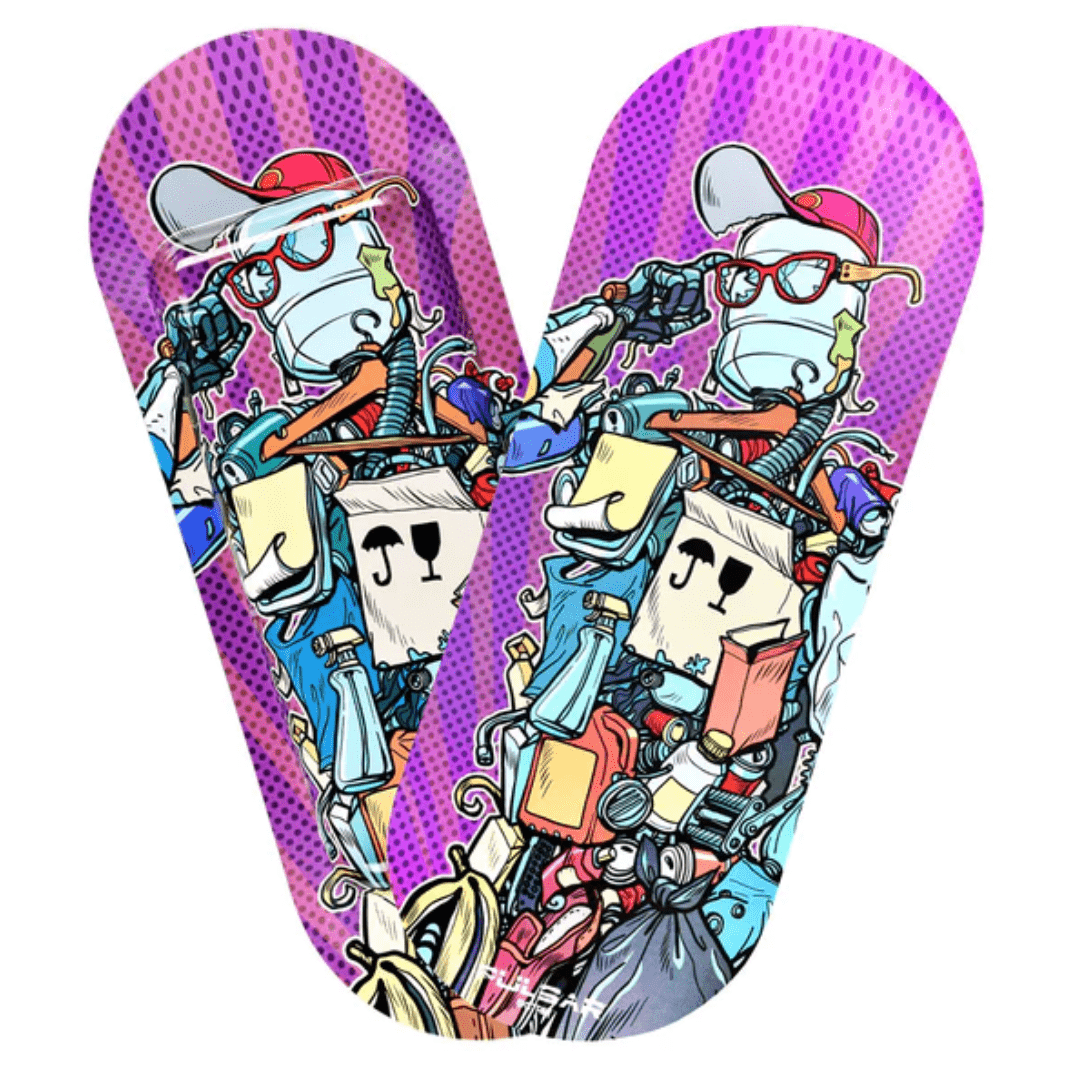 Pulsar SK8Tray Metal Rolling Tray measure 7.25" x 19.75" and feature a multitude of stunning artwork. Pulsar Sk8Tray's have rolled edges for strength, safety, and containment of one's favorite herbaceous products. Featuring extra-wide "dual kick" edges for an added rolling surface area and easier maneuverability. This colorfast tray will never peel, chip, or fade and is easy to clean. The bottom of the tray has the Pulsar Sk8Tray logo. Rolling area measures 5.5" by 13" (13.97cm x 33.02cm).