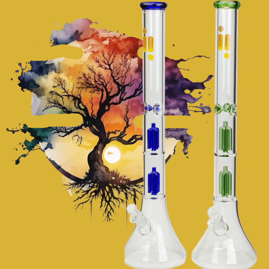 Enjoy Infyniti Vibes and 420 Highs with this 7mm Dual Tree Perc Beaker by Infyniti Glass! Crafted out of quality borosilicate glass, this 23" tall beaker ensures longevity and durability. Designed with TWO 4-arm tree percs and an ice pinch, there's no doubt you will receive ultra smooth smoke off every bowl!Â