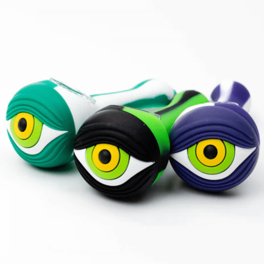 The Eye Silicone Hand Pipe w/ Glass Bowl is perfect for those who are tired of cracking and breaking their hand pipes. This pipe features a meshed glass bowl while the rest of the pipe is 100% silicone. This pipe also features a monster eye design so you can smoke in style! If you're looking for a durable hand pipe in you're in the right place!