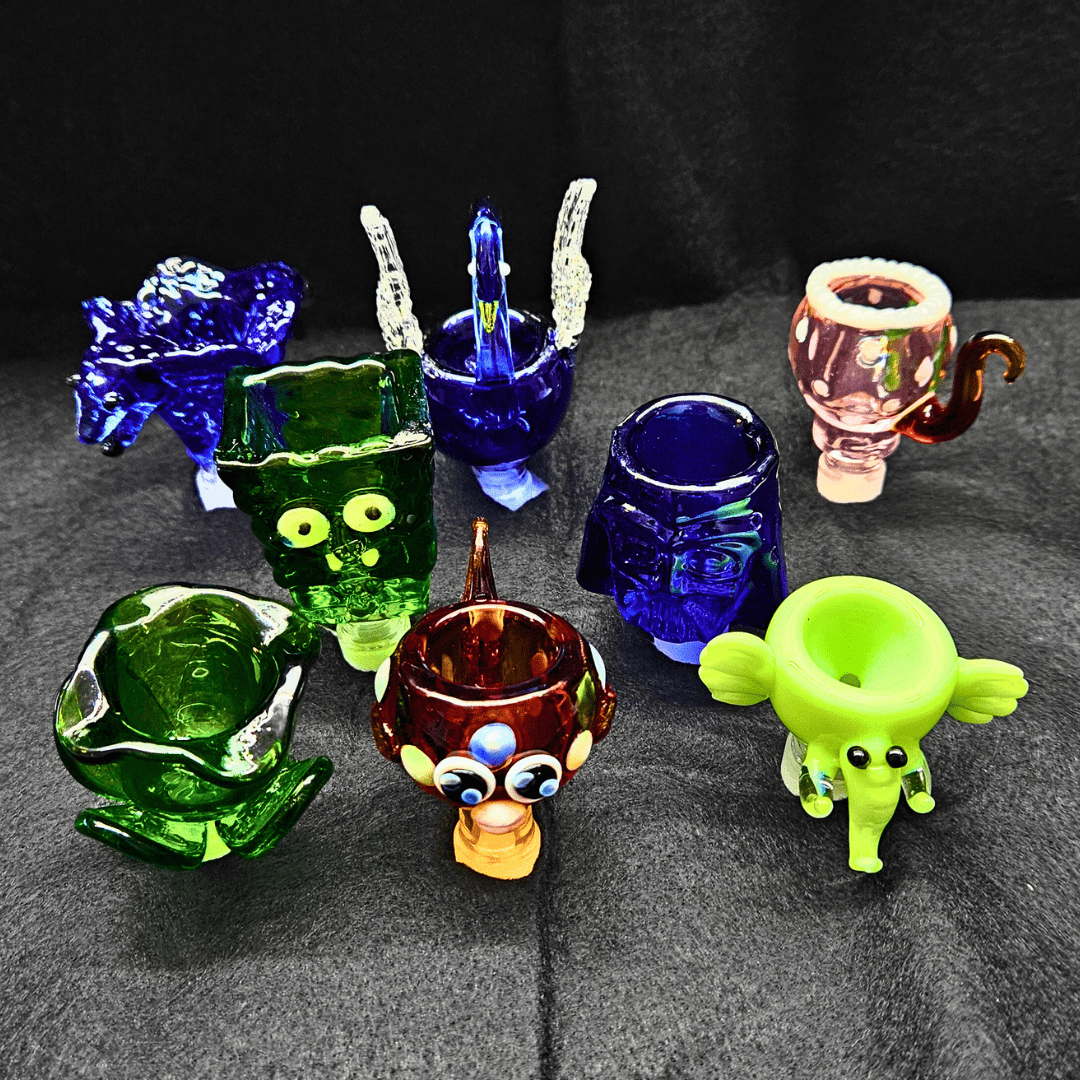 Bong replacement bowl- Flower Shape Glass Bowl is a beautiful addition to your favourite bong! This glass bowl features an intricate flower design with flower pedal-styled handles for ease of grip while smoking. This bowl comes equipped with a 14mm joint and is available in four different colorways.