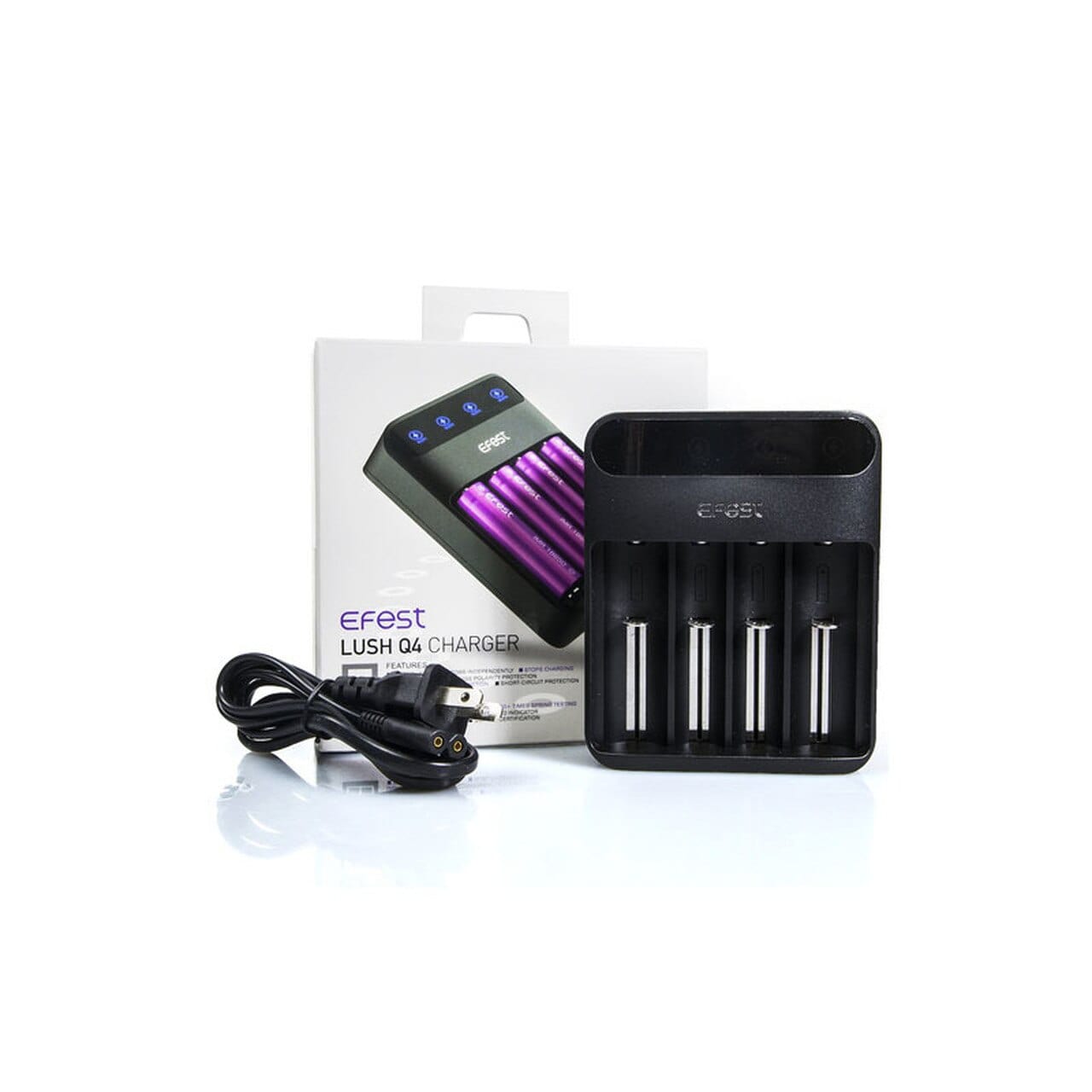 The Lush Q4 Battery Charger by Efest is a 4 bay smart charger. The device features 3 charging modes and protections to ensure battery protection and safety. The LED display and stylish design is built with fire safe materials and spring loaded connectivity. This device is compatible with a variety of vape batteries and is equipped with individual battery monitoring.