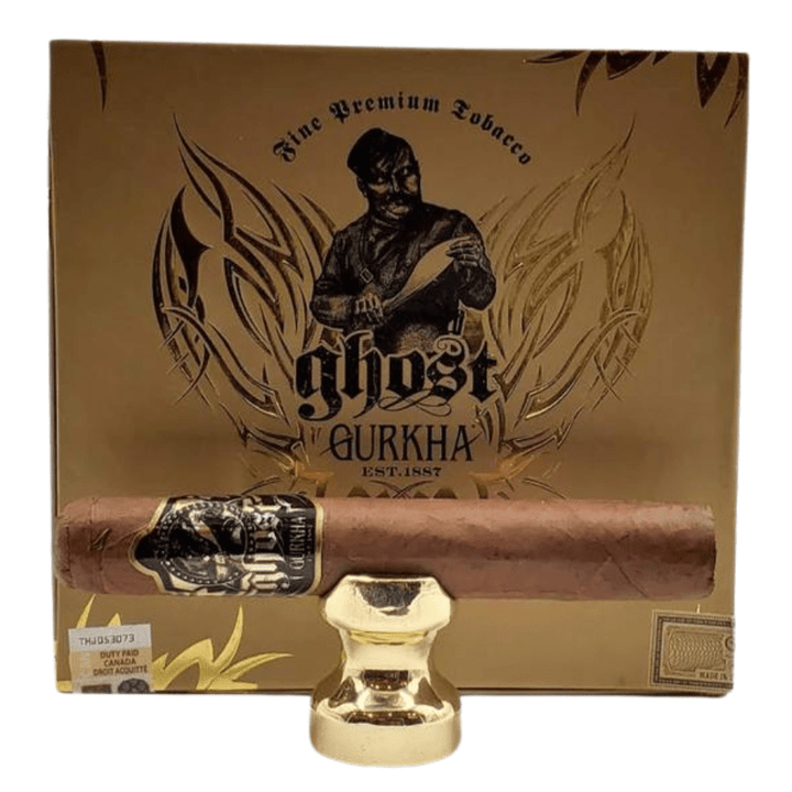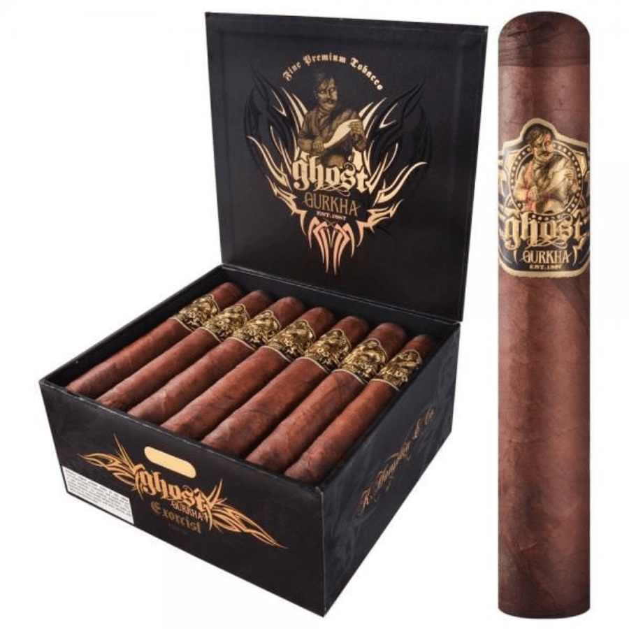 Gurkha Cigars Ghost Gold Exorcist features an alluring blend of dark Brazilian, Arapiraca Maduro wrapper, that is complemented by a finely aged Criollo 1998 binder and only the most carefully selected Dominican and Nicaraguan fillers. Ghost Gold is a rich, medium-bodied cigar with a multi-layered flavor profile providing sweet and earthy undertones with lingering flavors of cocoa and cinnamon.