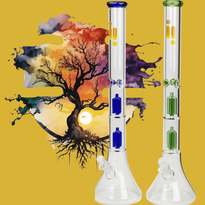 Enjoy Infyniti Vibes and 420 Highs with this 7mm Dual Tree Perc Beaker by Infyniti Glass! Crafted out of quality borosilicate glass, this 23" tall beaker ensures longevity and durability. Designed with TWO 4-arm tree percs and an ice pinch, there's no doubt you will receive ultra smooth smoke off every bowl!