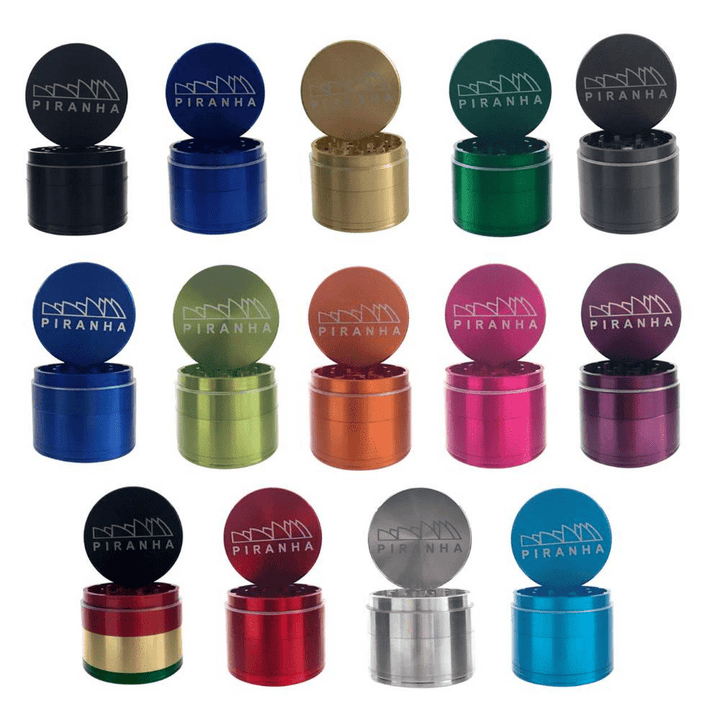 Piranha weed grinder medium sized one, coming in at 2.5"-quite a bit bigger our smallest size, but still perfect for discretion, one hitters and small places. 4 pieces create a super functional herb grinder with a sifting bottom for your herb to fall through and catch in the middle compartment. The screened bottom allows that fine pollen to fall through into a collection tray for a rainy day. Comes with a pollen pick and a magnetic closure for the perfect grind every time.