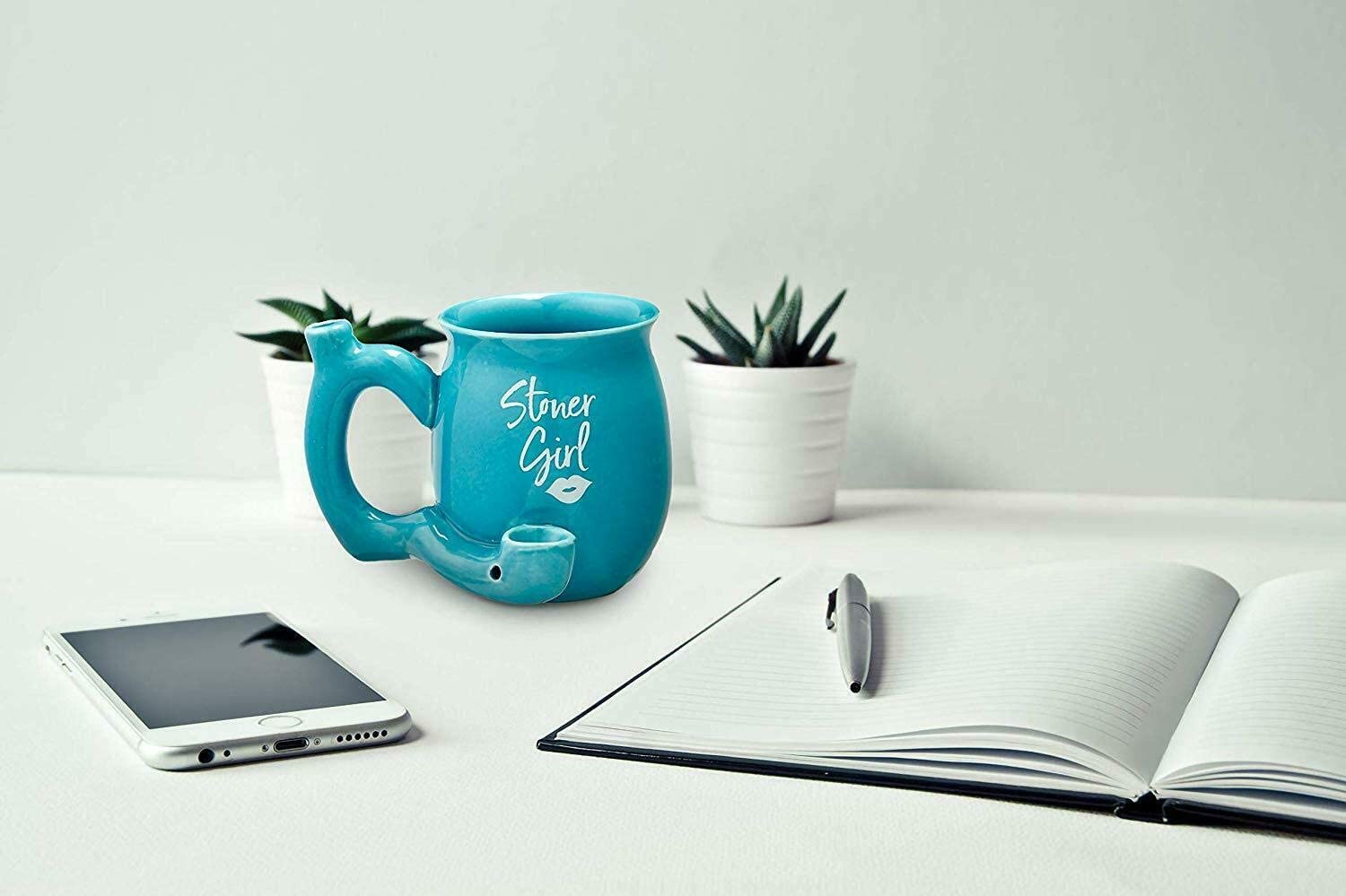 Perk up your morning routine with Roast and Toast Ceramic Mug Pipe"Stoner Girl"-This novelty mug is made from ceramic and features a standard coffee cup that can hold approx 10 oz of your favourite blend. Sit back, relax and enjoy your smoke and coffee.
