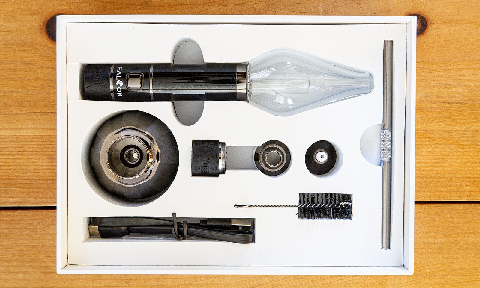 - 1 x Falcon Device (with Glass Attachment and QTC Coil)